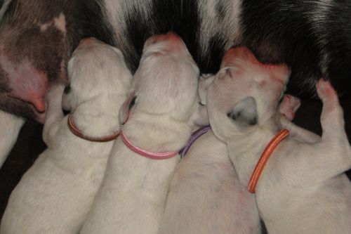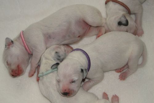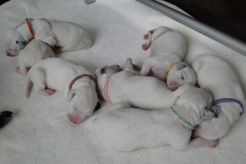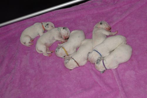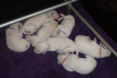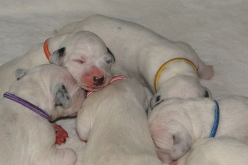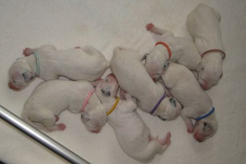 Lady Lila - Hündin - weiß/schwarz Gentleman Grün - Rüde - weiß/schwarz Lady Gelb - Hündin - weiß/schwarz Gentleman Orange - Rüde - weiß/schwarz *** *** 3. Tag - 14.10.2010 Unsere "7 Zwerge":